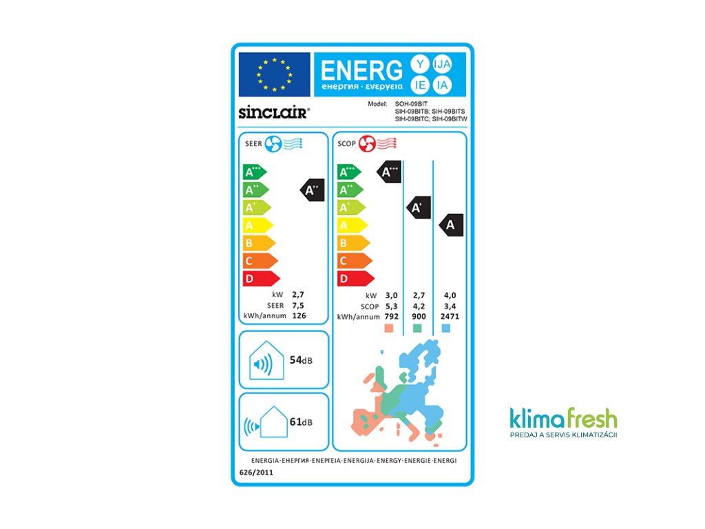 ✔ Energetická trieda A++ (chladenie) / A+ (vykurovanie) – úsporná prevádzka s vysokou účinnosťou.